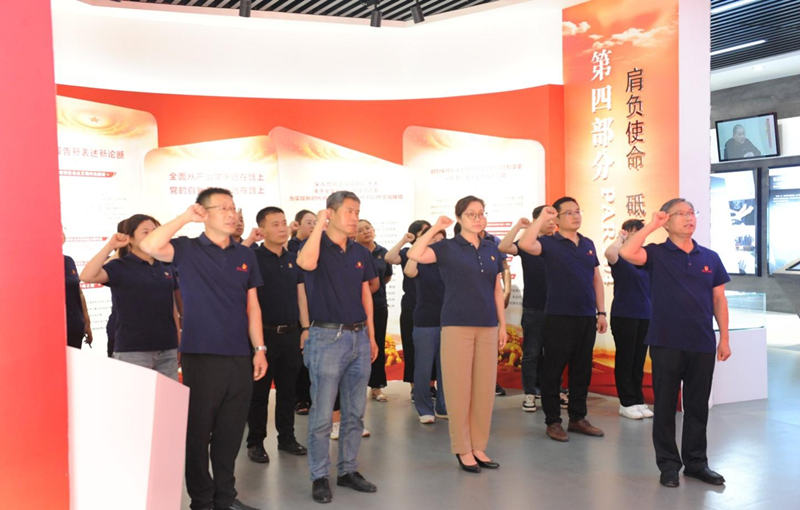 在宣誓廳,全體黨員干部面對鮮紅的黨旗,莊嚴(yán)宣誓,重溫入黨誓詞,深刻領(lǐng)會共產(chǎn)黨人的初心使命,進(jìn)一步堅定了理想信念。